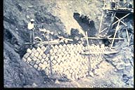 割石積土留工.積石据付け裏込礫採取