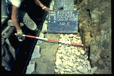 コンクリートブロック積土留工積石作業