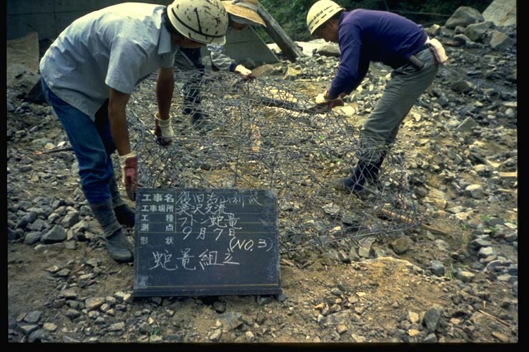 フトン篭土留工.フトン篭組立