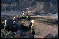 ヘリコプター緑化工.アスファルト乳剤の積込