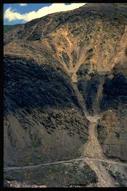 久蔵沢左岸黒い帯はヘリ散布