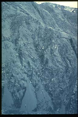 淀沢上流から下流へ.左岸崩壊地