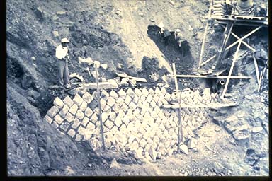 割石積土留工.積石据付け裏込礫採取