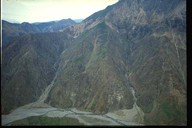 松木沢下流部右岸の崩壊.中心の緑部分S37,38施工地